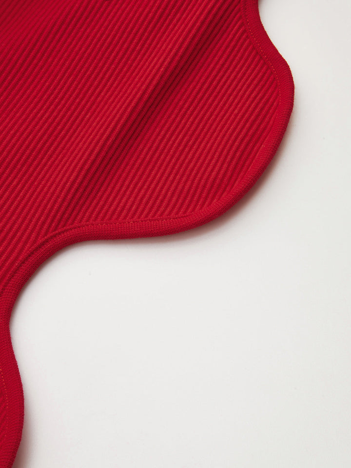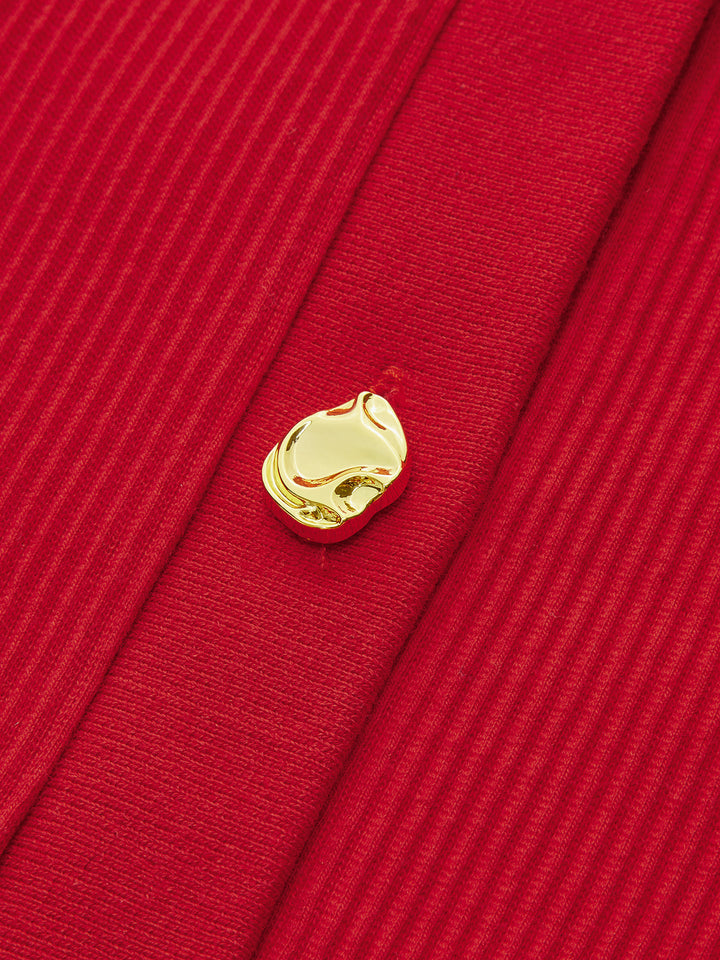 Scalloped Sleeve Button Ribbed Knit Mini Dress