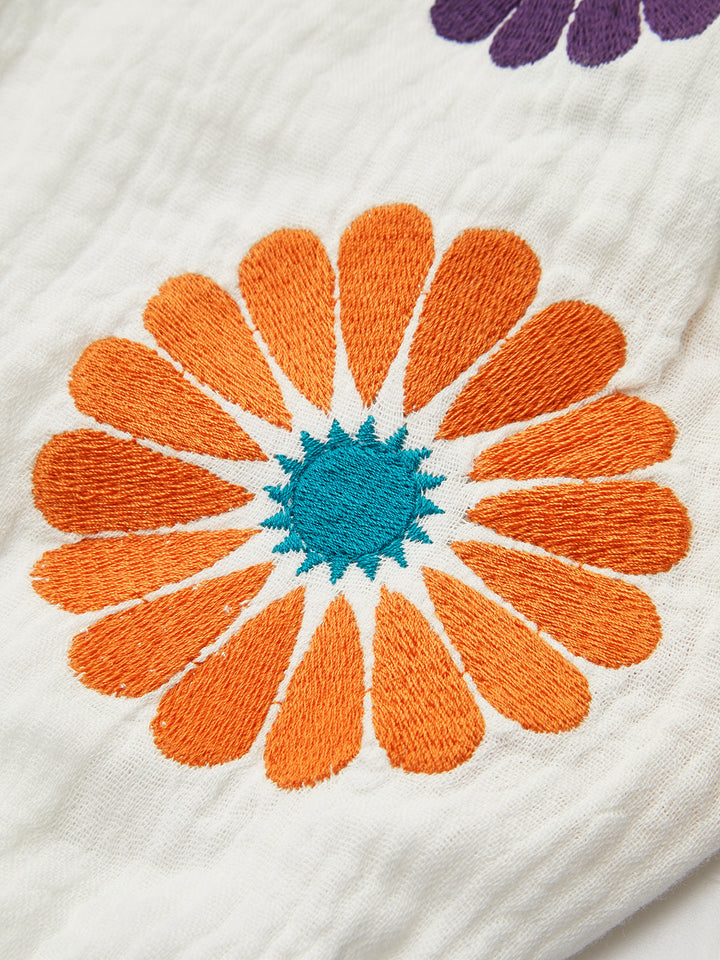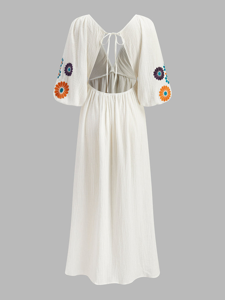 Semi-Sheer Embroidery V-Neck Floral Dress