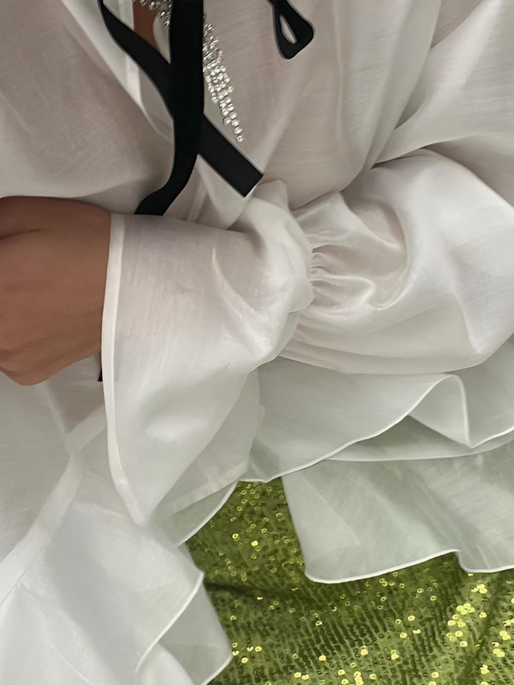 Semi-Sheer Tie-Neck Ruffle Shirt