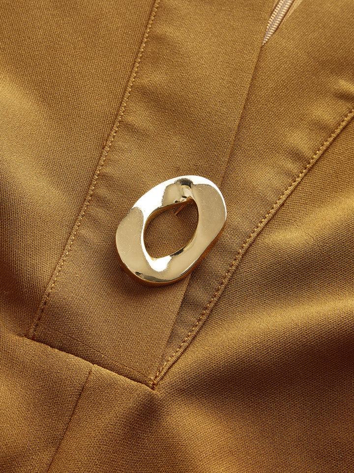 V-Neck Metal Detail Fitted Waist Dress