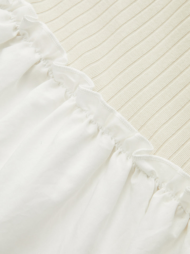 Bell Sleeve Contrast Panel Ribbed Maxi Dress