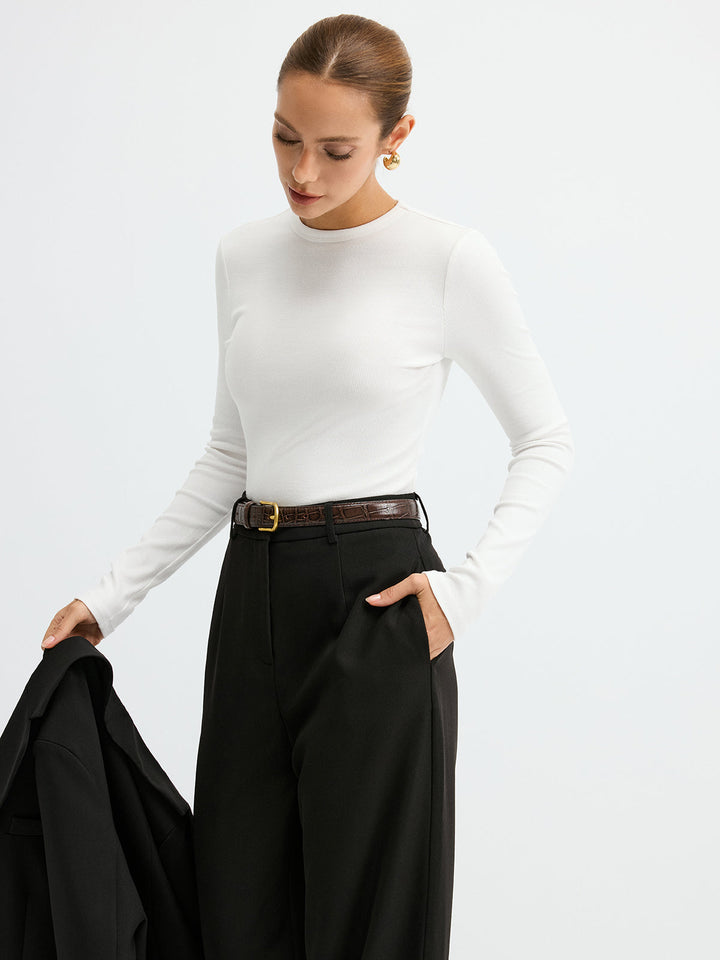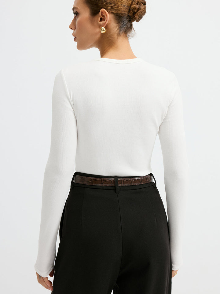 Ribbed Crew Neck Long Sleeve T-Shirt