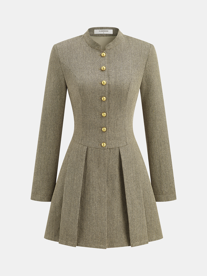 Snap Button Plaid Pleated Mini Dress