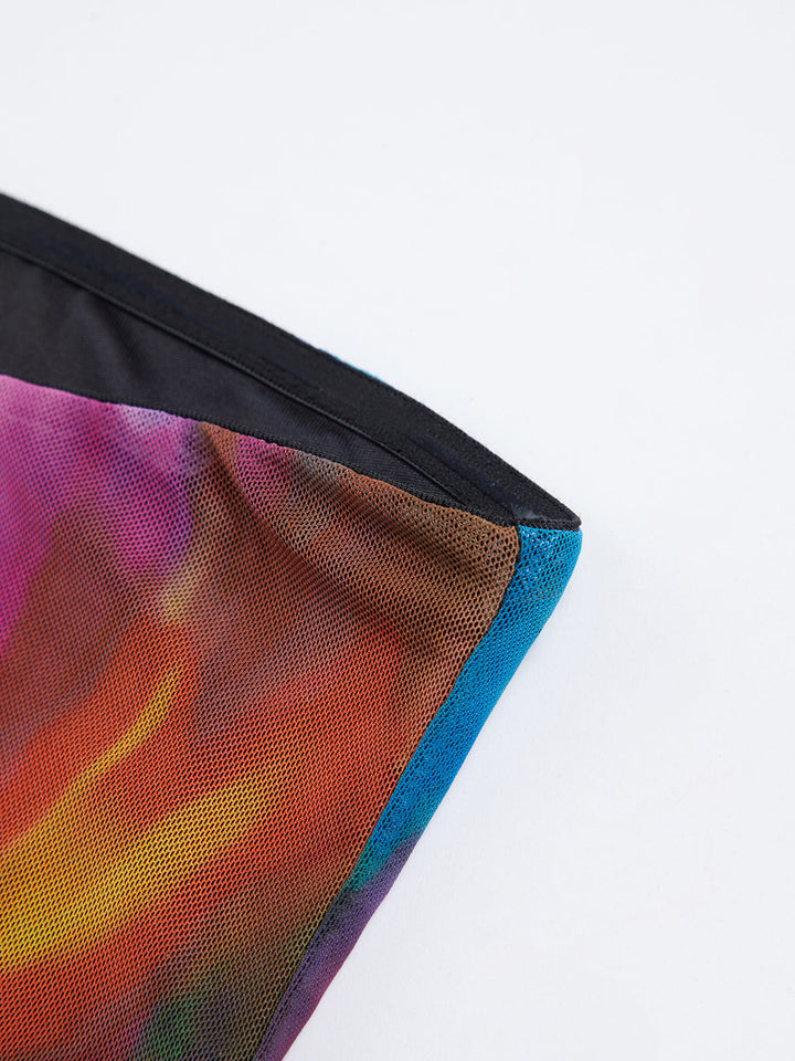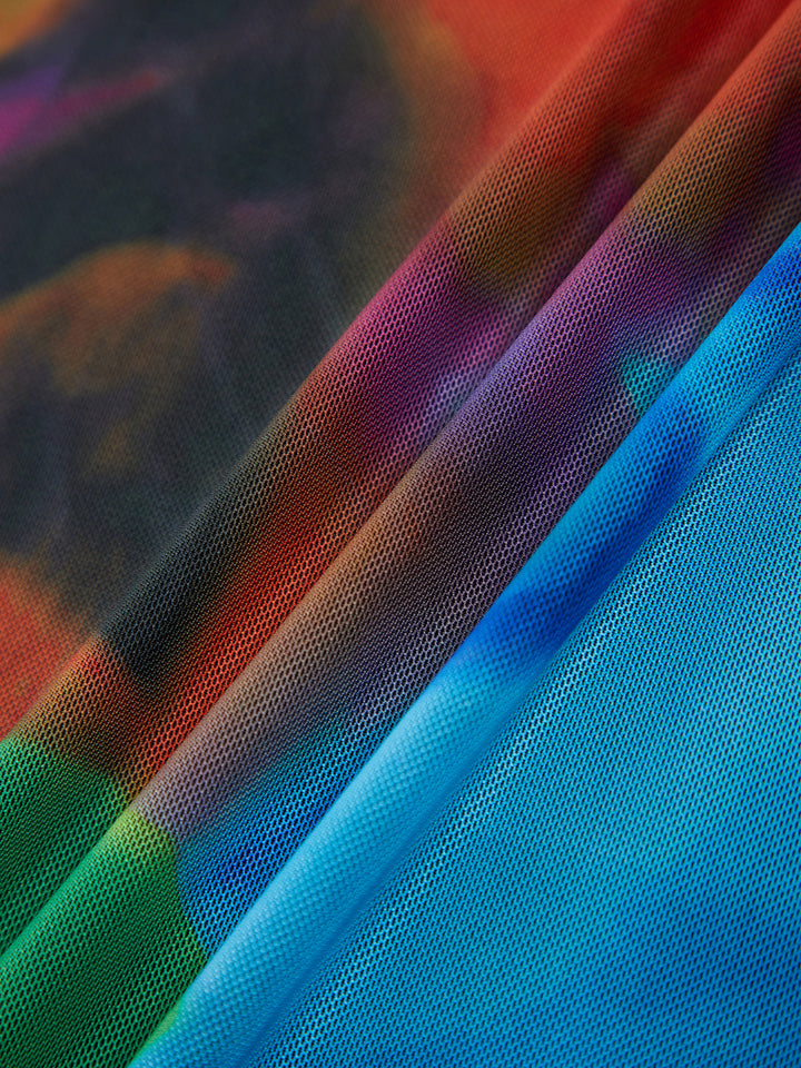 Tulle Printed Mesh Strapless Tube Midi Dress