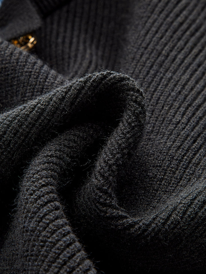 Wool Blend Denim Collar Puff Sleeve Cardigan