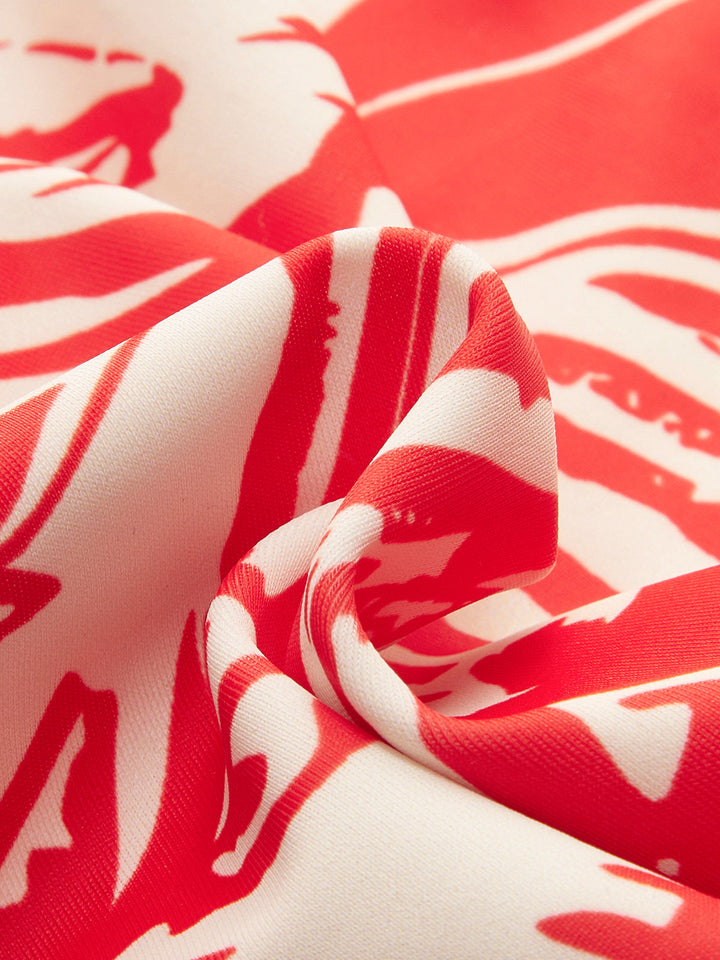 One-Shoulder Tropical Print Bikini Set