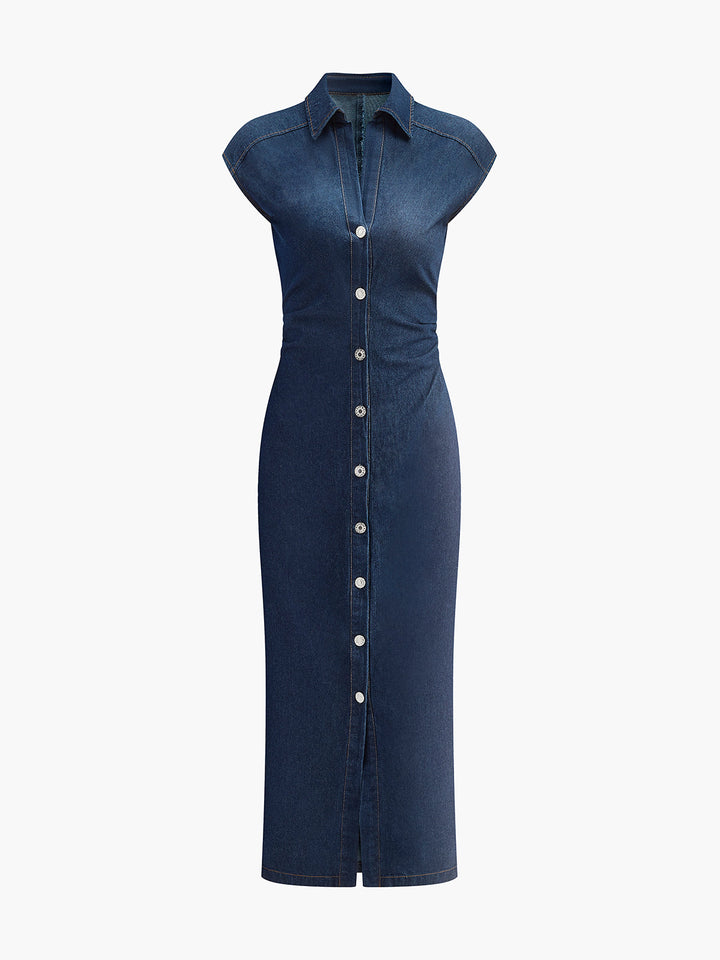 V-Neck Sleeveless Button Denim Dress