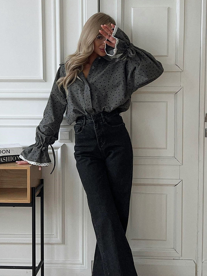 Women Heart Print Button Down Shirt