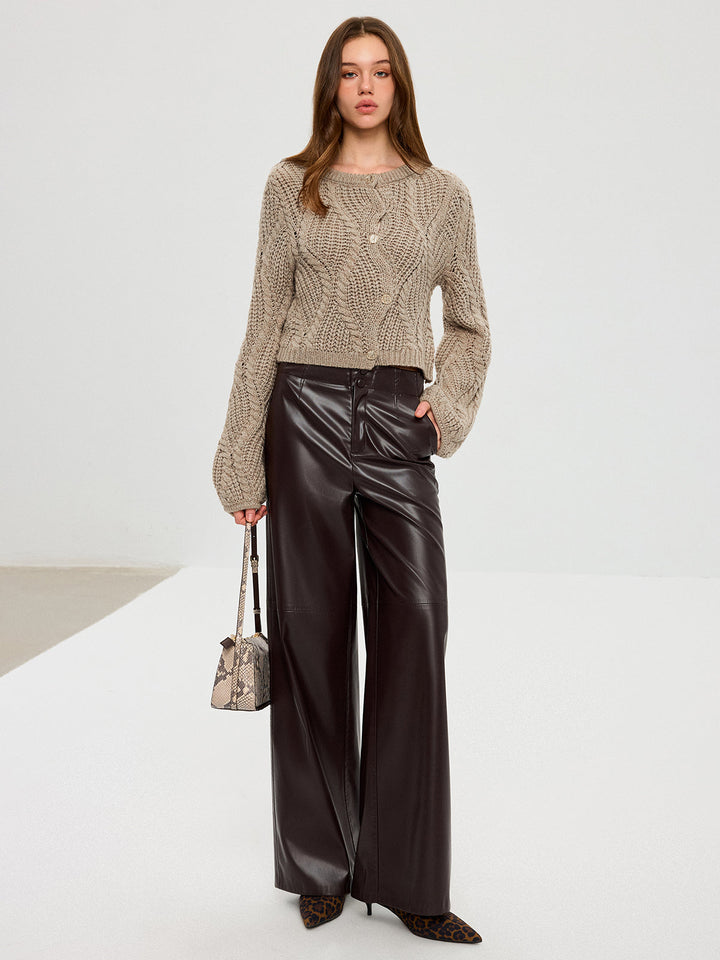 Wool Blend Cable Knit Cardigan